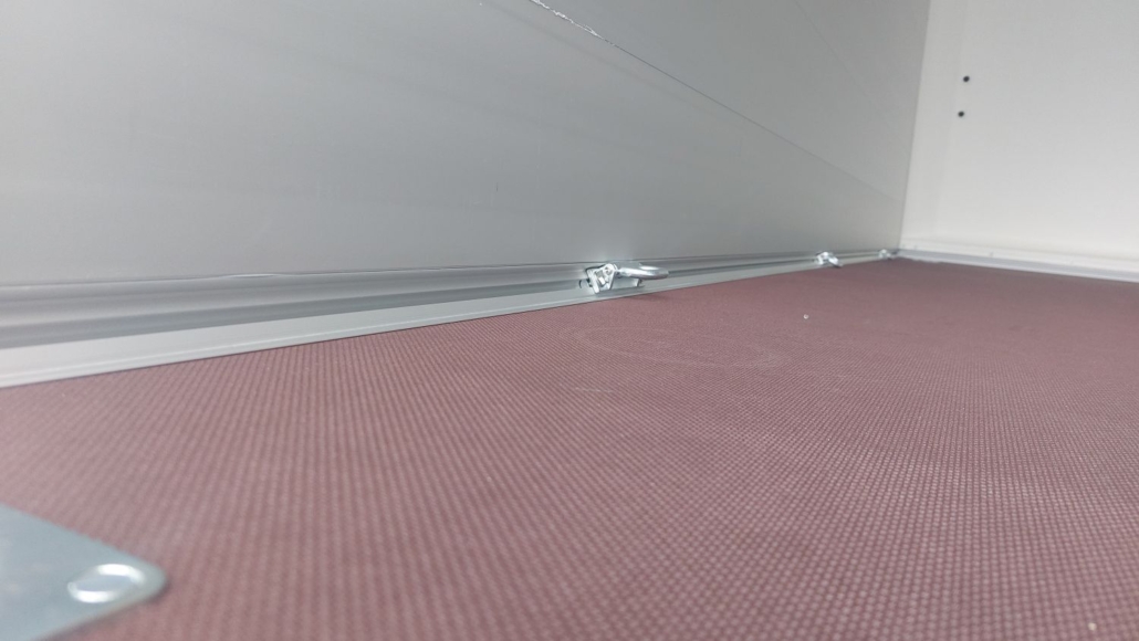 Zur umfangreichen Ausstattung gehören das bewährte CFlexLock-Zurrsystem mit verstellbaren Zurrösen, das nach DIN 12640 zertifiziert ist und eine Zugkraft von 600 daN pro Zurrpunkt bietet. Damit lassen sich auch schwere oder unhandliche Güter sicher fixieren. Im vorderen Bereich befindet sich ein praktisches Ablagefach im Bug, das zusätzlichen Stauraum für Werkzeuge oder Zubehör bietet. Das Heckportal ist mit einem verzinkten Stahlrahmen verstärkt und sorgt so für maximale Stabilität und Langlebigkeit.
