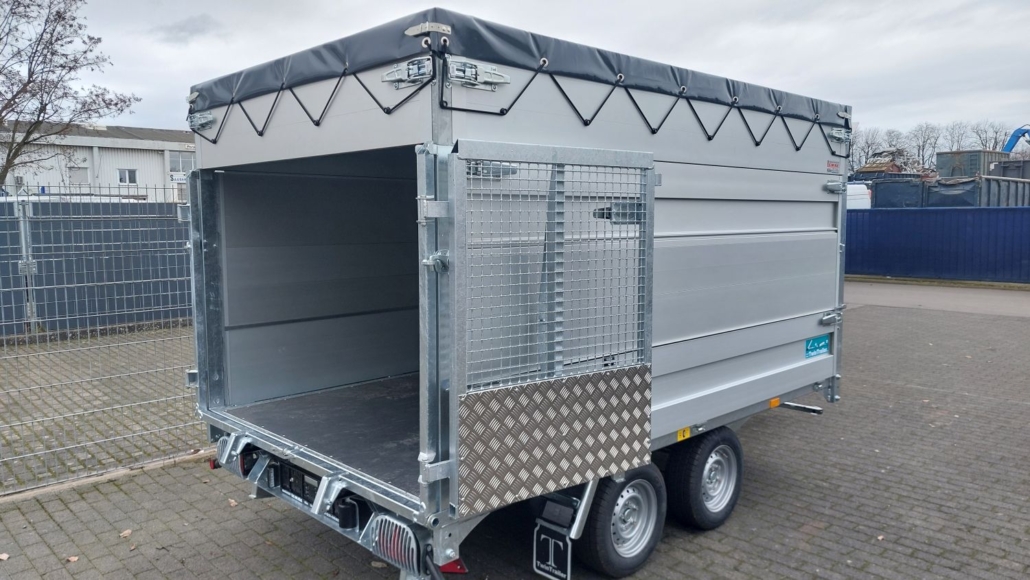 Die robuste, vollverzinkte Stahlkonstruktion sorgt für maximale Stabilität, Langlebigkeit und optimalen Korrosionsschutz. Zwei gebremste Achsen gewährleisten eine sichere Straßenlage und ein ruhiges Fahrverhalten – auch bei hoher Beladung. Die niedrige Ladehöhe erleichtert das Be- und Entladen erheblich und steigert den Arbeitskomfort im täglichen Einsatz.