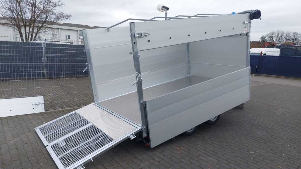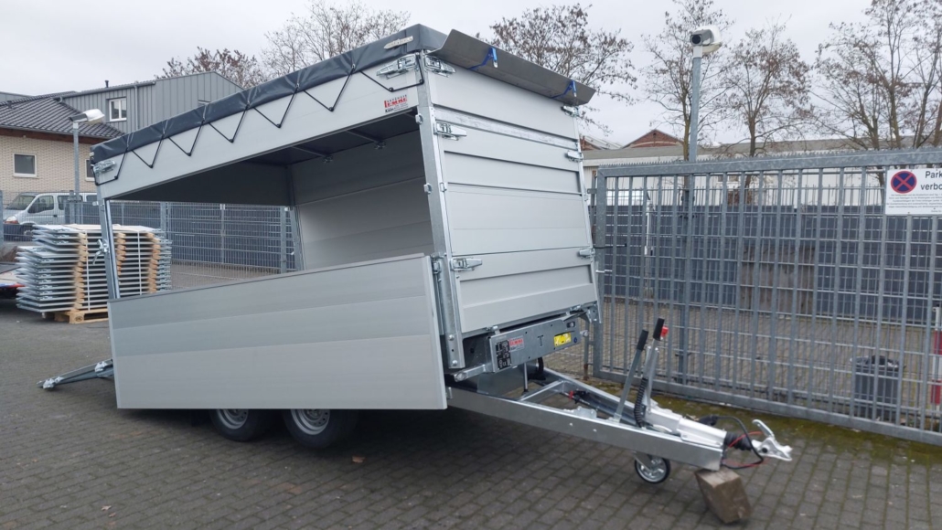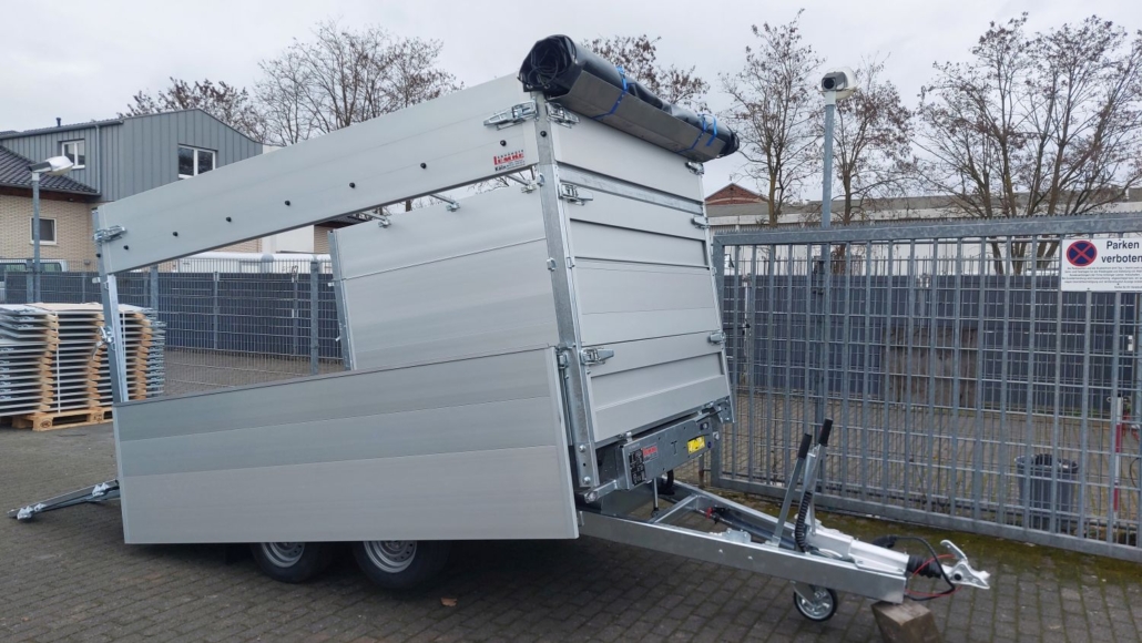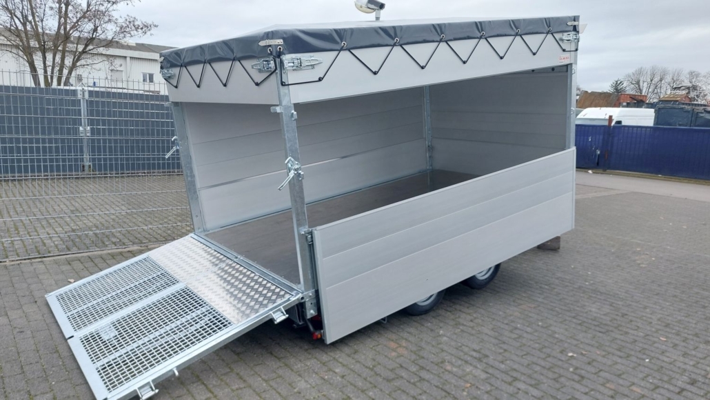 von der Seite beladen. - Flachplane anthrazit (auch andere Farben möglich) mit Ablagefach montiert.